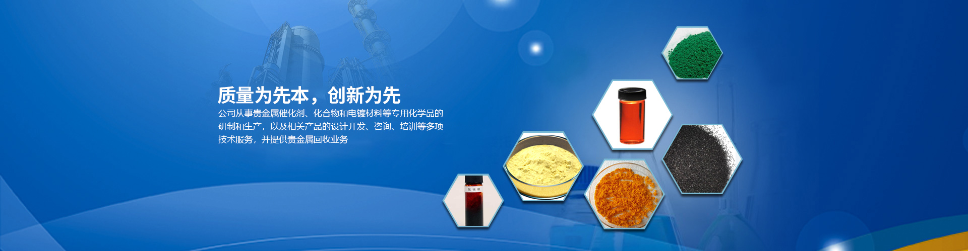 目前公司的主要產(chǎn)品有:醋酸鈀、氯化鈀、硝酸鈀、硫酸鈀、氯鉑酸、反-二(三苯基膦)二氯化鈀、四(三苯基膦)鈀、乙酰丙酮鈀;三氯化銠、辛酸銠、碘化銠、硝酸銠、醋酸銠、三苯基膦氯化銠、三苯基膦乙酰丙酮羰基銠、三苯基膦氯化銠、乙酰丙酮二羰基銠等,廣泛應(yīng)用于藥物合成、石油化工、精細(xì)化工和電鍍領(lǐng)域。本公司對(duì)所有產(chǎn)品進(jìn)行嚴(yán)格檢測(cè)從定量和定性方面嚴(yán)把質(zhì)量關(guān),并通過ISO90001質(zhì)量體系認(rèn)證。